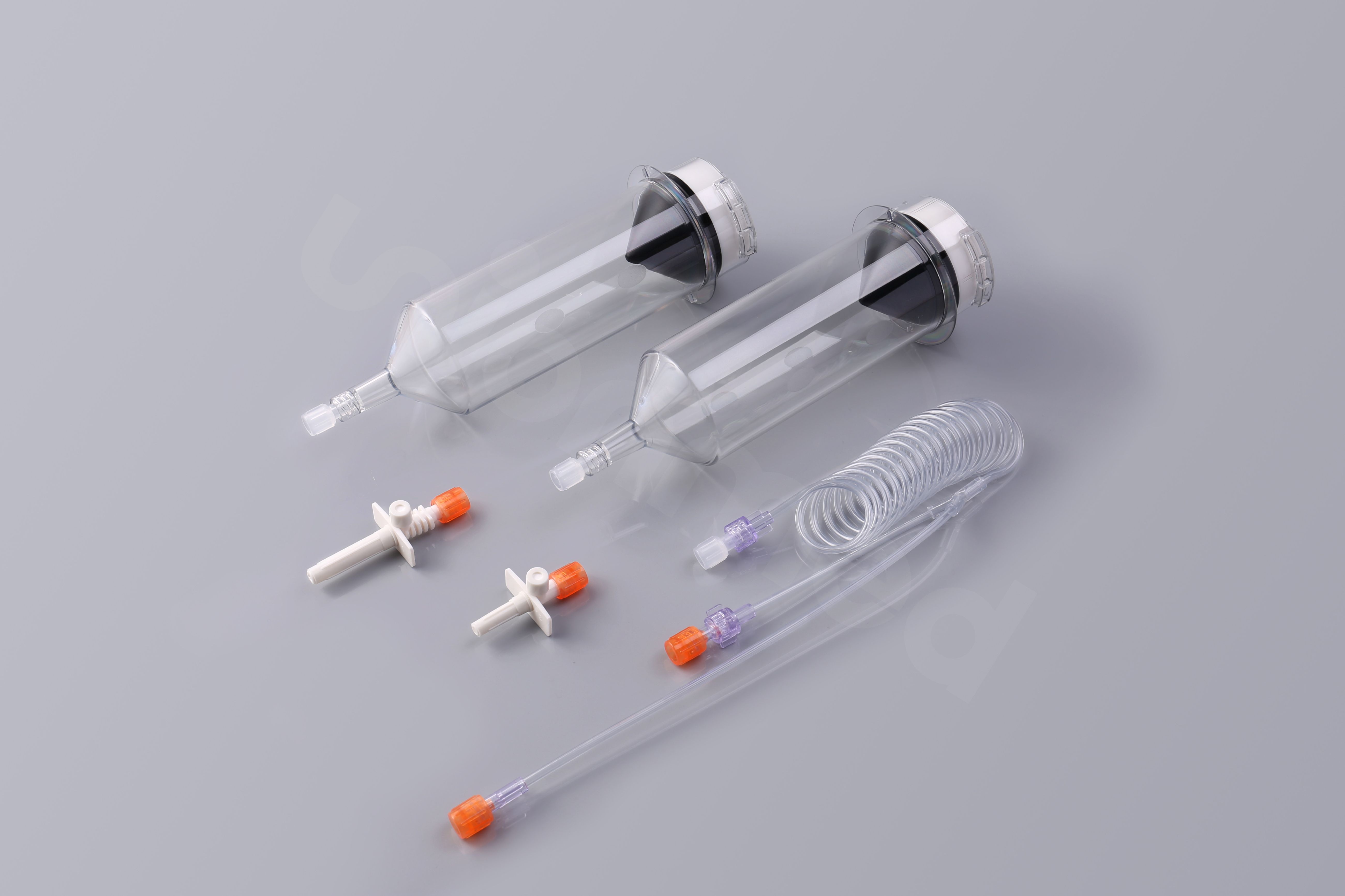 Content: 1 - 65ml Syringe 1 - 115ml Syringe 1 - 250cm Connector Tube 1 - Long Spike 1 - Short Spike
